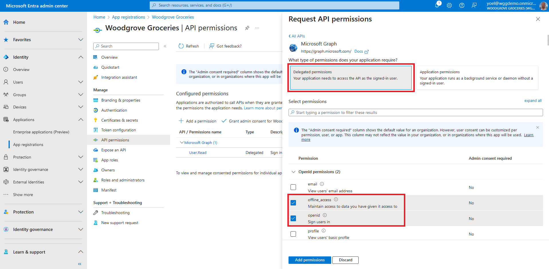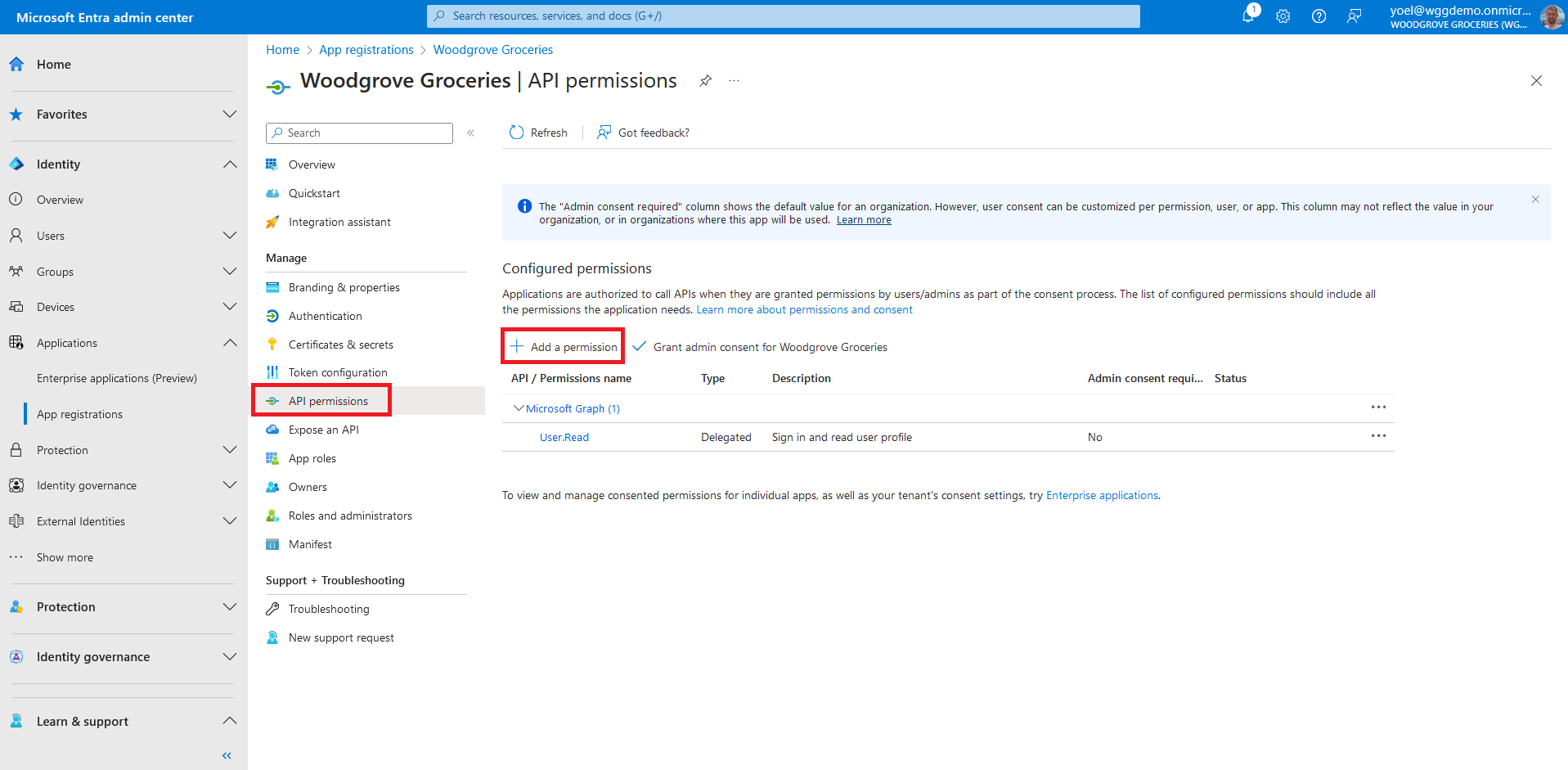Select Grant admin consent for <your tenant name>, then select Yes.